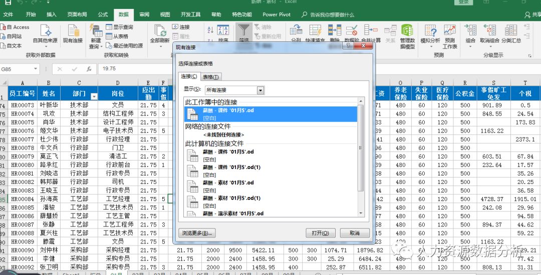 数据-现有链接-浏览更多-找到图表的路径,点击确定