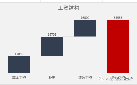 这个就是大家所看到的 用瀑布图做的工资薪资结构的图表!