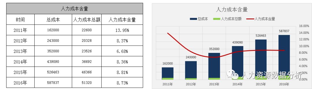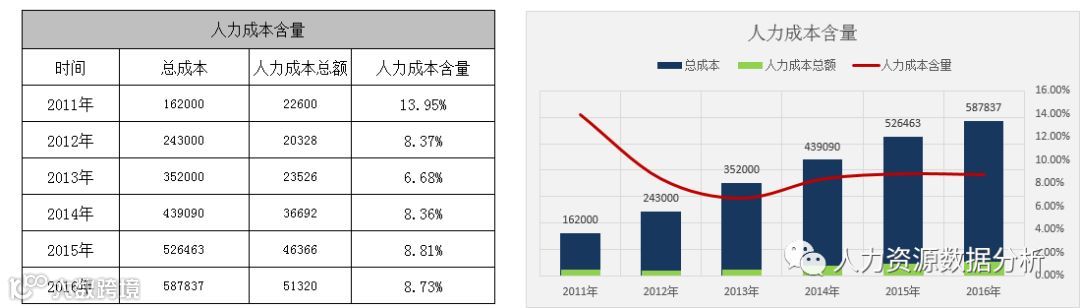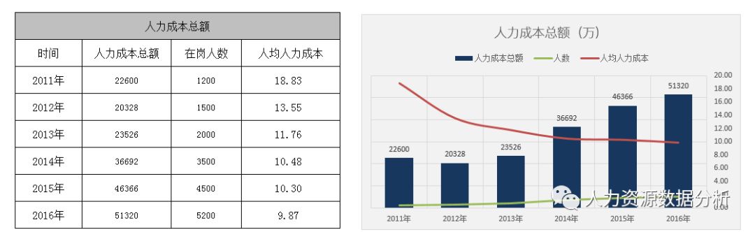原始数据表个图表,大家可以关注公众号,回复“人力成本分析”下载原始数据表格。