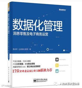 如果你在当当收人力资源数据分析,大部分的书都是讲EXCEL操作方面的书,这些书主要讲软件的操作,很少讲人力资源的分析,所以这些书是工具书,可以掌握分析的方法,但是给不了你思维,当然在这部分书里可以推荐一本是三茅的一个专栏作家写的书,这本书虽然是写EXCEL的一些操作,但是在大的方向还是从人力资源角度来的,所以大家可以看看,但是书里的很多操作都比较复杂,有大量的函数,对于初级的人力资源从业者,可能用不到。