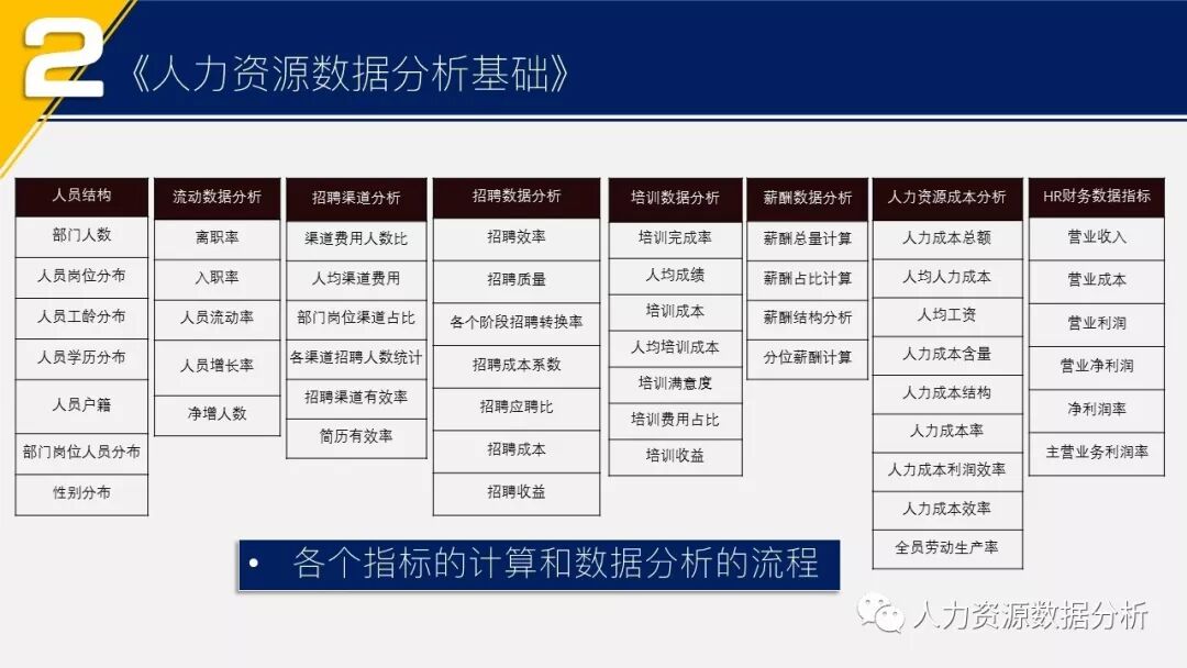 在人力资源数据分析的学习过程中,除了学习数据分析的相关技巧,图表处理外,还需要学习相关的人力资源的只是,因为如果你对行业不了解,就算你数据分析能力再强,也不能很好的去分析一个行业,所以走位一个人力资源数据分析者,一定也是人力资源的从业者,在做人力资源的数据分析的时候,我们有一个环节很重要,就是去做各个模块的数据指标的选择。