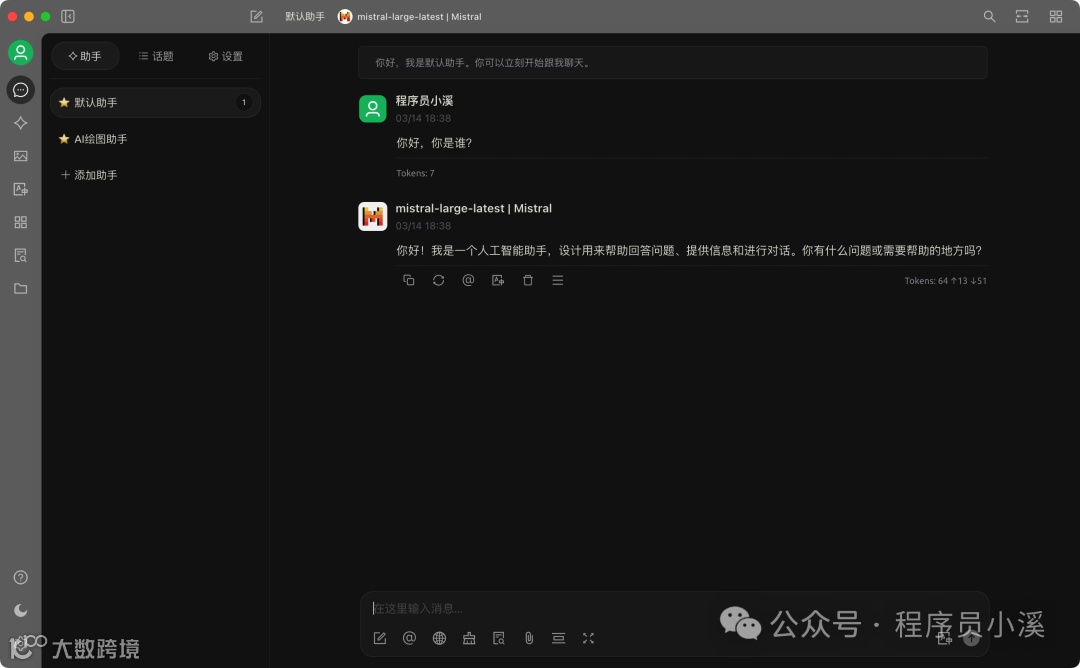 配置完提供商和模型信息后,进入聊天页面,选择模型后就可以进行对话了