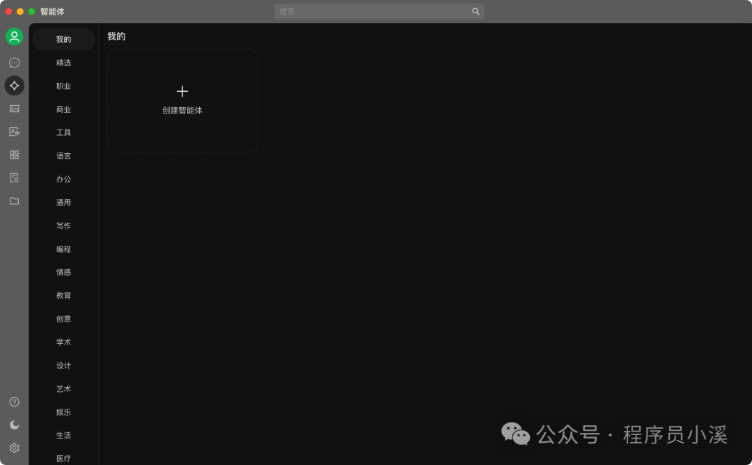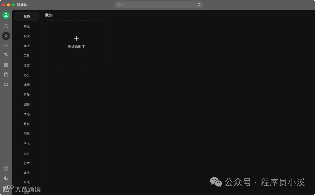 进入智能体页面,我们可以选择创建自己的智能体,也可以从智能体列表中选择内置的智能体