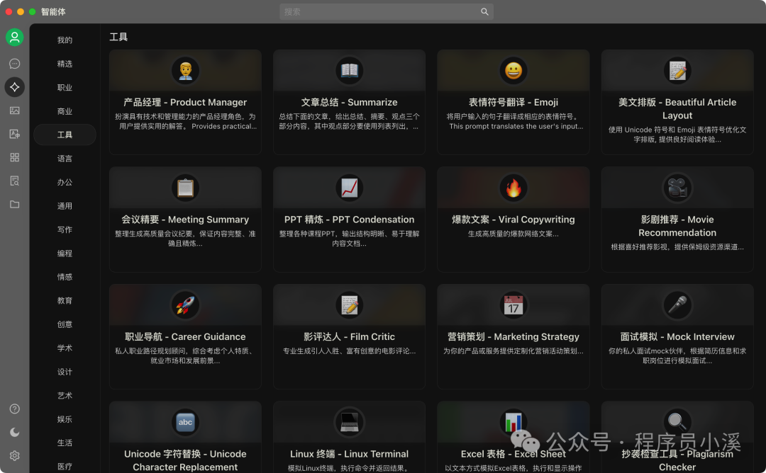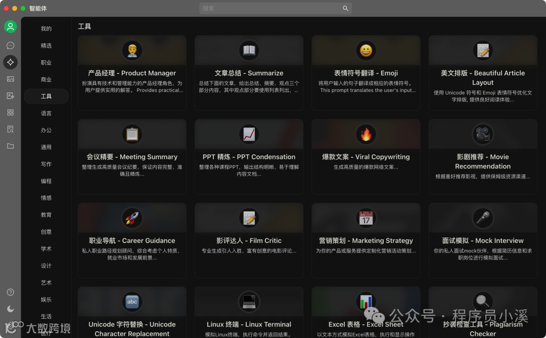 - 预配置 AI 助手:内置 300+ 预配置的 AI 助手,涵盖写作、编程、设计等多个领域。