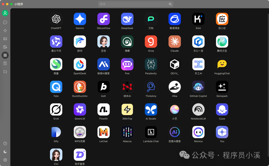 Cherry Studio中内置集成了50个市面上主流的AI平台快捷入口,无需在浏览器打开网站就可以直接访问