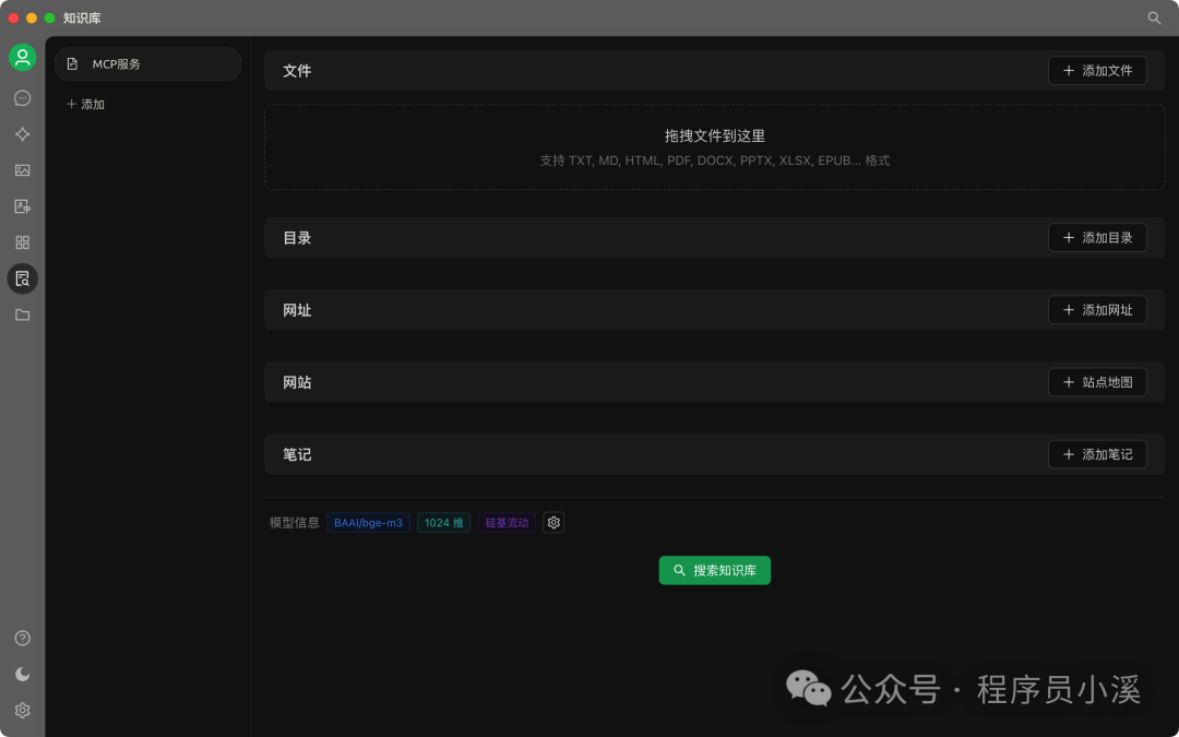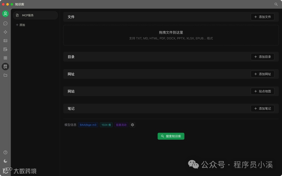 Cherry Studio支持通过 上传文件、目录、网址、网站、笔记 等多种形式构建个人知识库