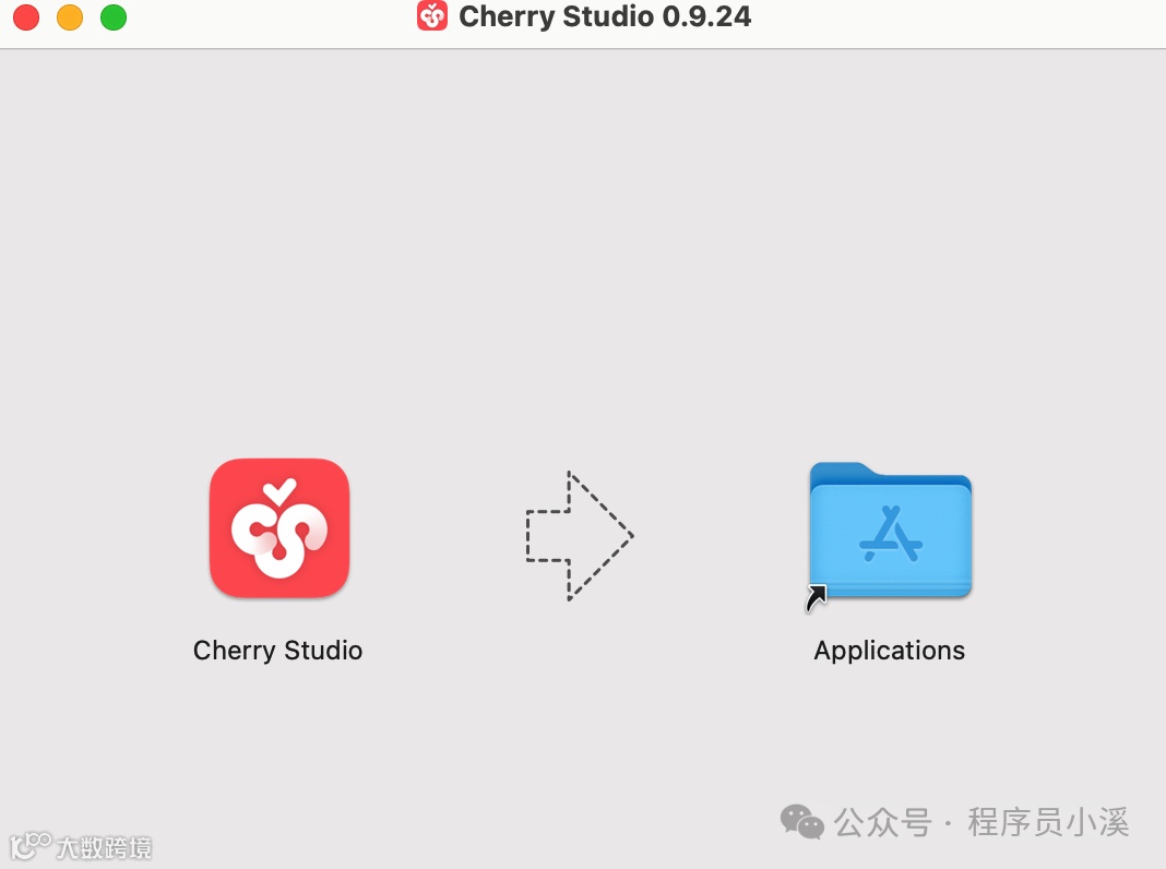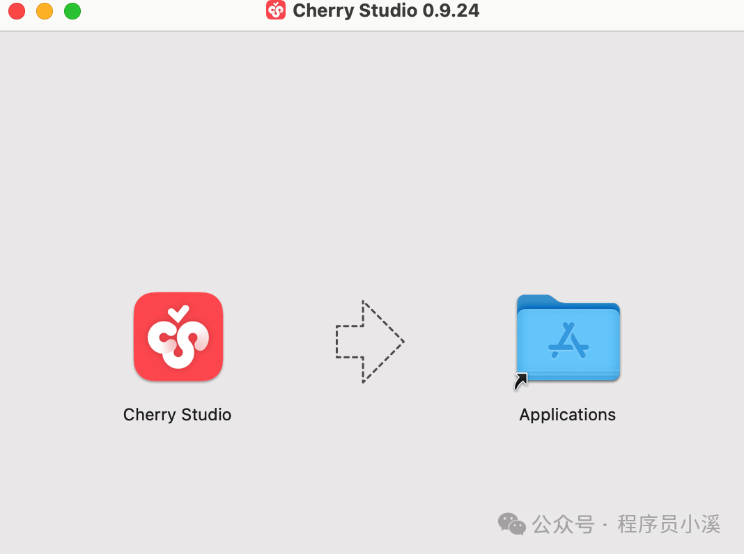 这里以macOS为例,下载Intel芯片安装包,下载完成后双击安装包进行安装,将【Cherry Studio】拖拽到Applications完成安装