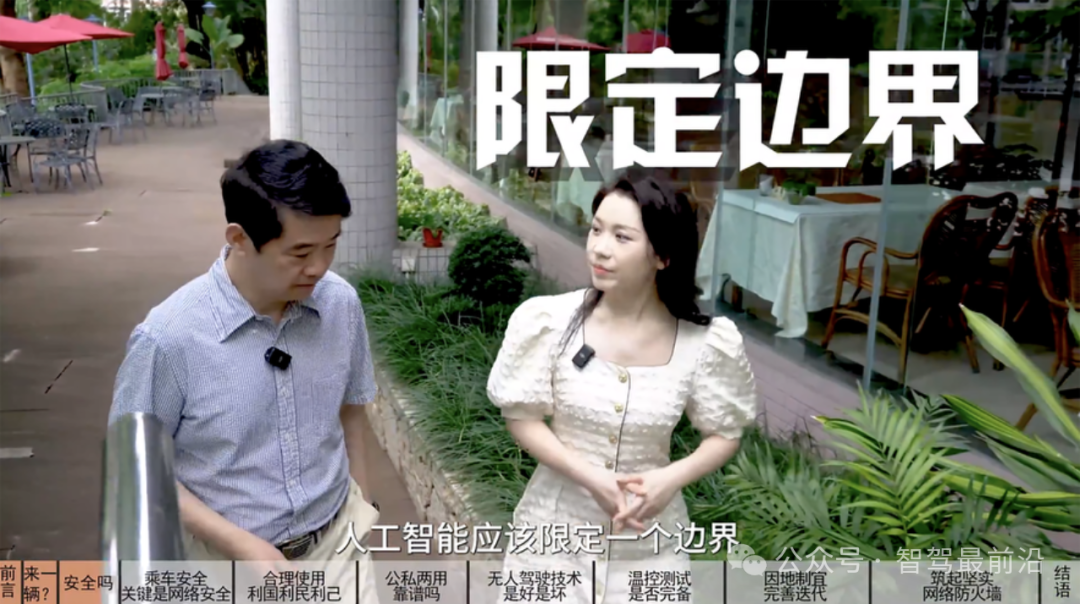 在7月28日广东经济科教频道《观点财经》中,华南理工大学教授、广东数字经济专业委员会主任祁明就提出了一个有趣的观点:无人出租应当合理使用,AI应该限定边界,不能不加控制地发展,否则会造成很多问题。无人出租车可以应用到深夜时段、偏远地区以及危险地区,给人类无法及时响应的场景做一个补充。这其实就是将AI关在笼子内的较好的体现,在此场景下,AI的作用只是服务于人,服务于出租车、网约车,给出租车、网约车司机的服务提供补充,且可以让网约车、出租车司机拥有更加安全的驾驶环境。
