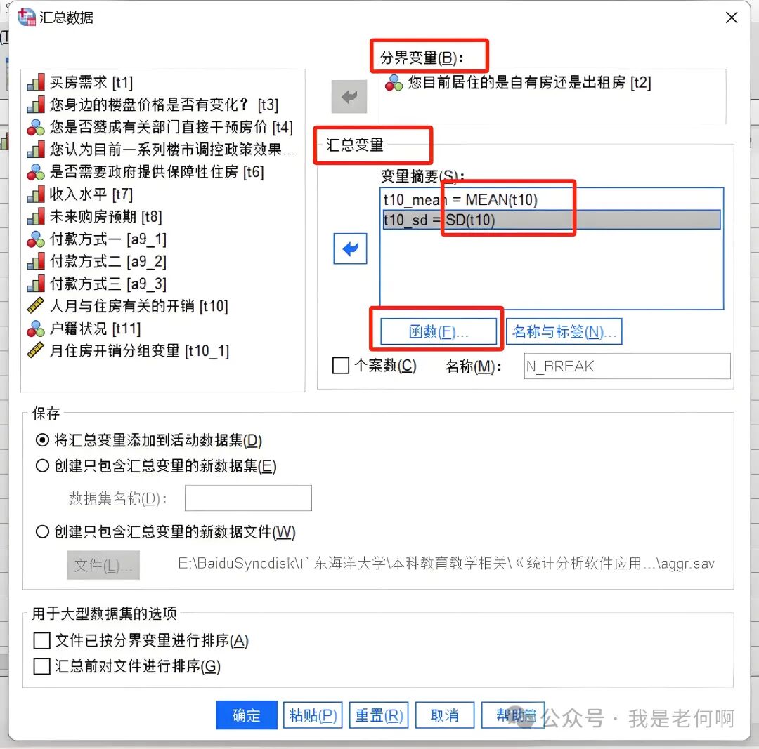 (2)对哪个变量进行汇总,并指定对汇总变量计算哪些统计量(如平均工资、平均消费金额和标准差)。(汇总变量及计算指标是?)