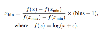 设置 [xmin, xmax] = [-0.3, 6],bins = 512,ϵ = 1,这使得时长可编码为512个离散整数,最高可达6.3秒。相反,要将离散化值解码为原始时长:
