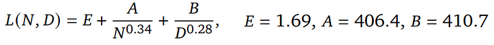 Chinchilla Scaling Law针对Return问题,提出了一个完整的Scaline公式如下。