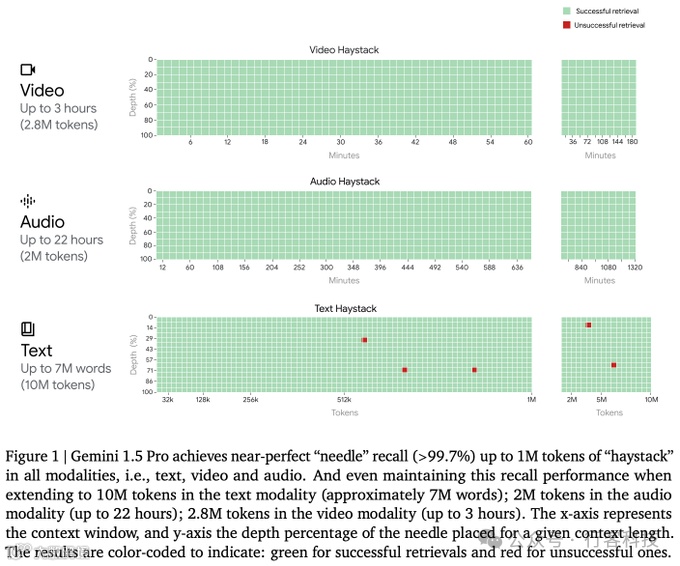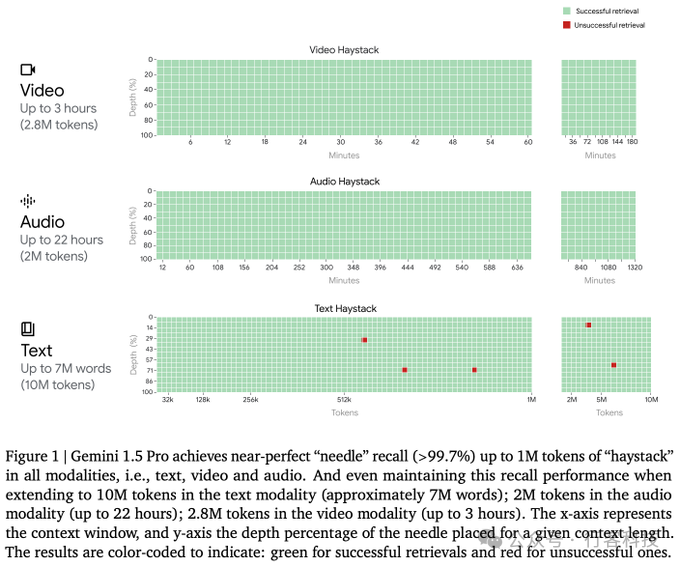 我们来看一下Gemini 1.5Pro在多模态海底捞针中的表现: