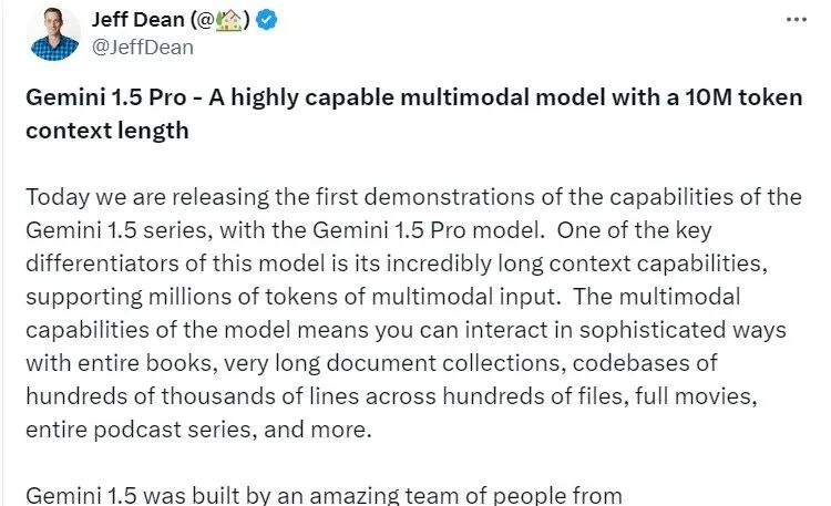 在过去的一周里,谷歌推出了其迄今为止最强大的模型——Gemini 1.0 Ultra,为谷歌产品带来了显著的改进。紧随其后,又引入了下一代模型——Gemini 1.5,相较于1.0 Ultra,Gemini 1.5在多个维度上实现了显著改进,尤其在减少计算资源需求方面。此外,这一新一代技术还实现了在长上下文理解方面的突破,能够处理高达一百万个token,创下了大型基础模型中最长上下文窗口的记录。