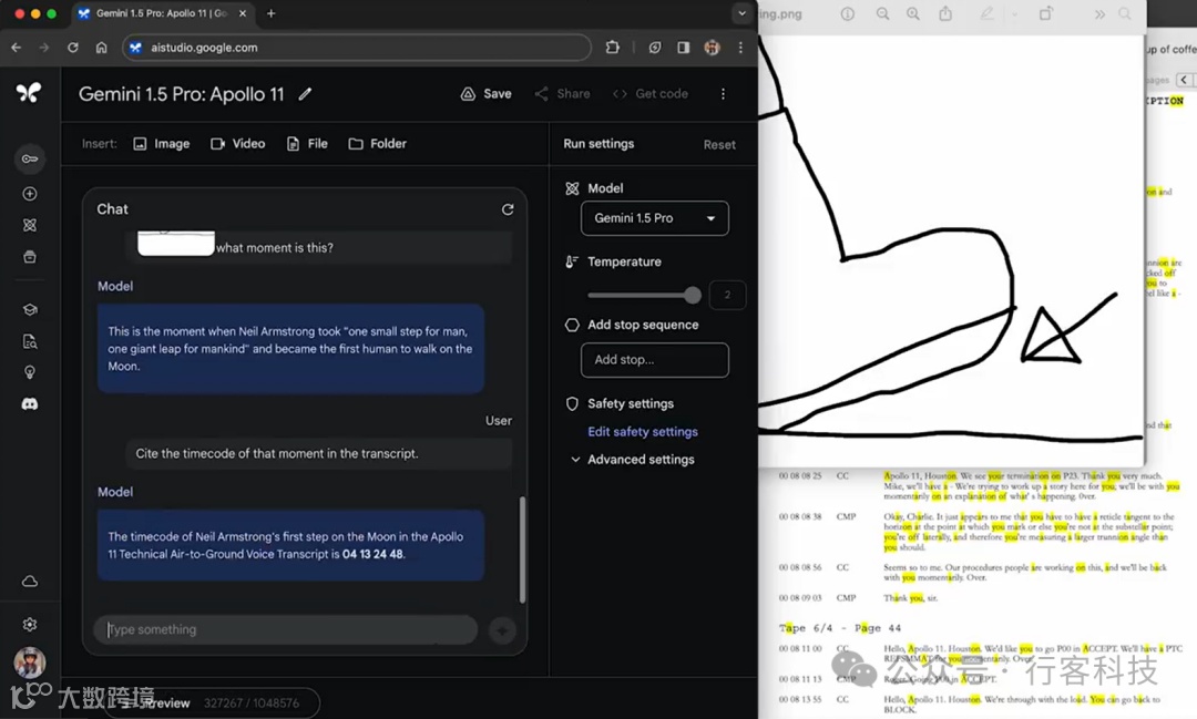 Gemini 1.5的出现,使得机器理解和处理大规模数据集成为可能。例如,当处理长达402页的阿波罗11号任务记录时,Gemini 1.5 Pro能够深入分析文档中的对话、事件和细节,提取出关键信息,甚至是那些细微的、容易被忽略的点。这种能力在历史研究、法律审查、大型文档管理等领域具有重要的应用价值。