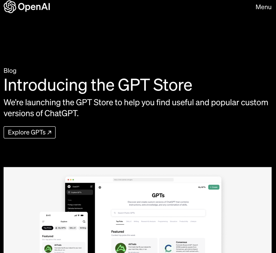 [1]https://techcrunch.com/2024/01/10/openai-launches-a-store-for-custom-ai-powered-chatbots/[2]https://openai.com/blog/introducing-the-gpt-stor