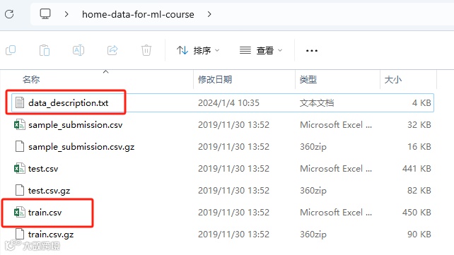 首先介绍一下数据集,数据集我在Kaggle上下载了一个房价预测的数据集。具体使用到的有两个文件。
