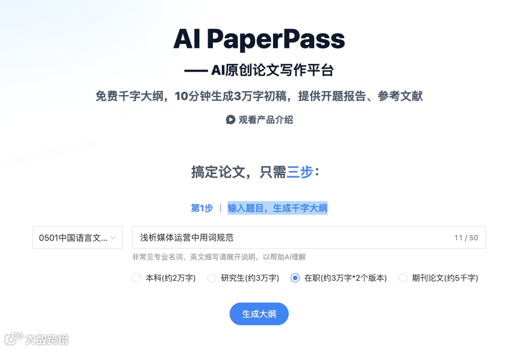 1. 一篇论文只需3步,「标题+专业方向-生成大纲-生成论文」