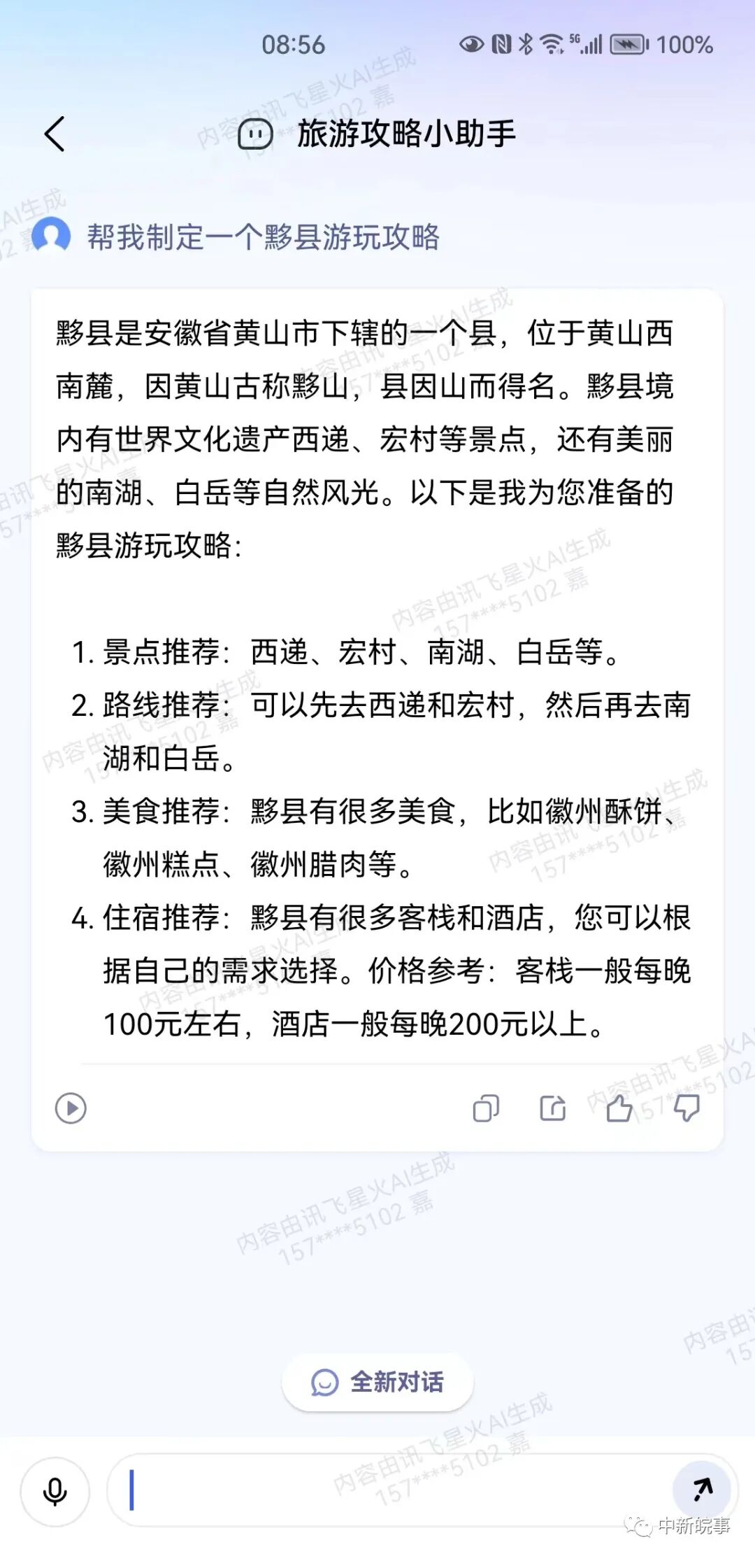比如再次请它制定了一份黟县的游玩攻略,它在1秒内给出线路、美食等。