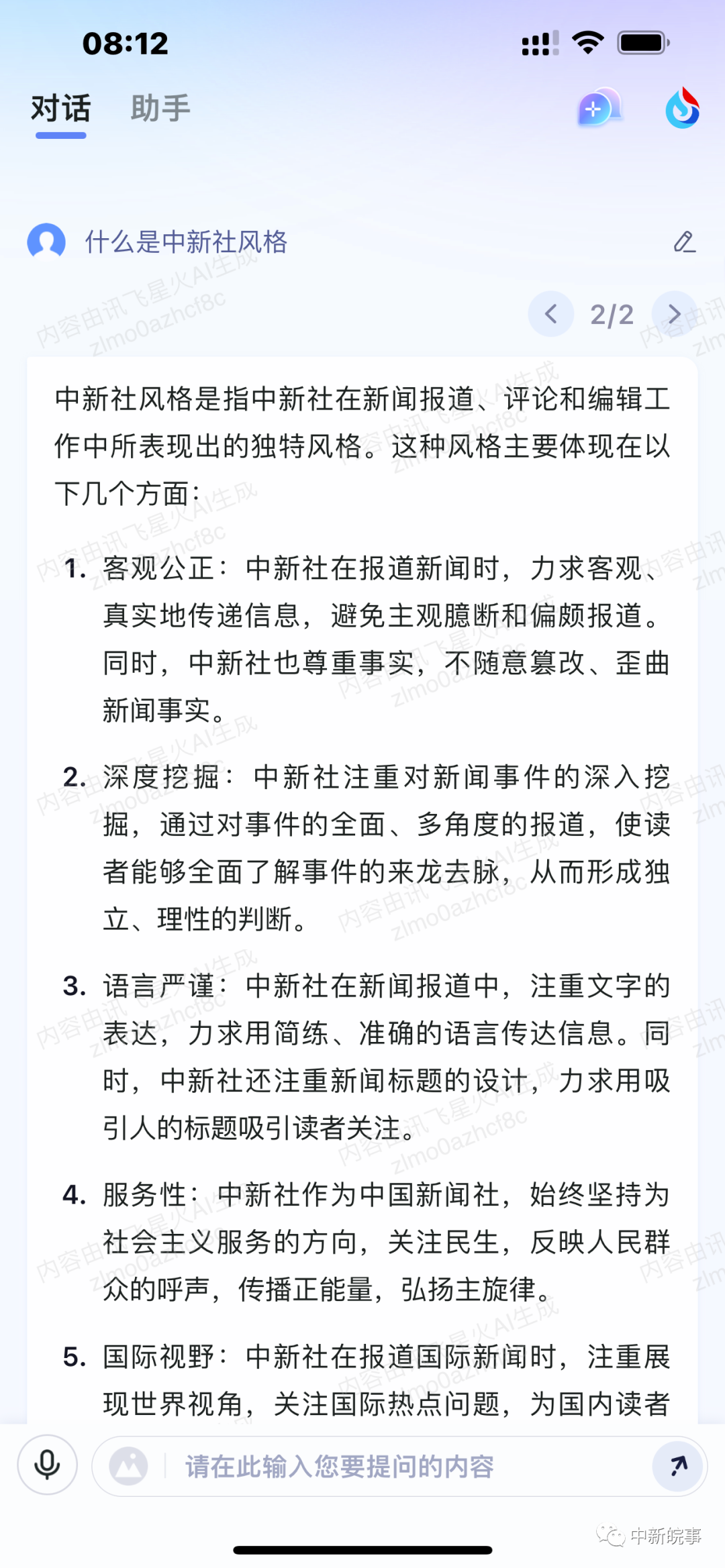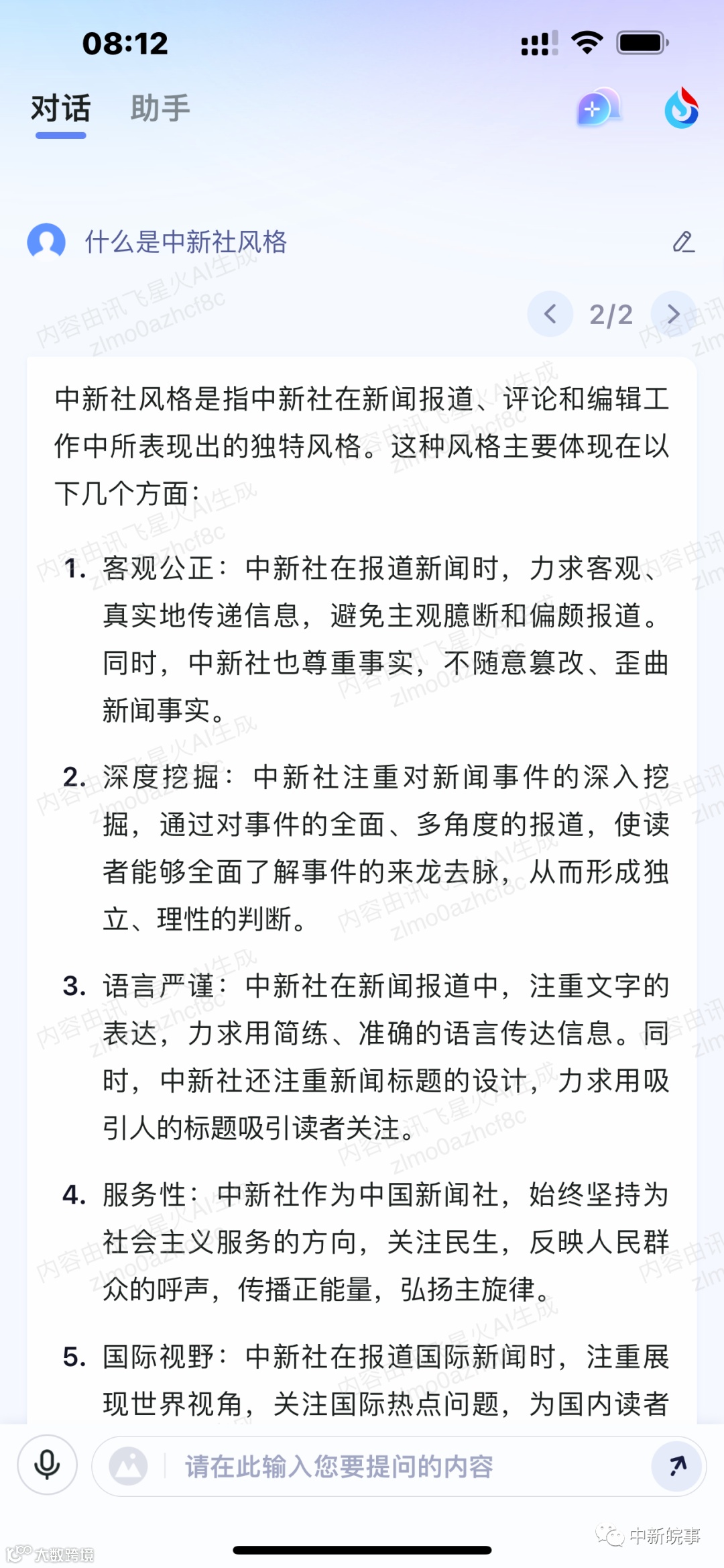 比如测试询问它何为中新社风格,它能准确地进行总结。