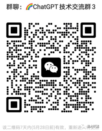 这是我建的一个ChatGPT的技术交流群,大家可以一起来学习、研究、探讨最新的AI技术,研究如何利用它,提供工作的效率,赚取时代的红利!