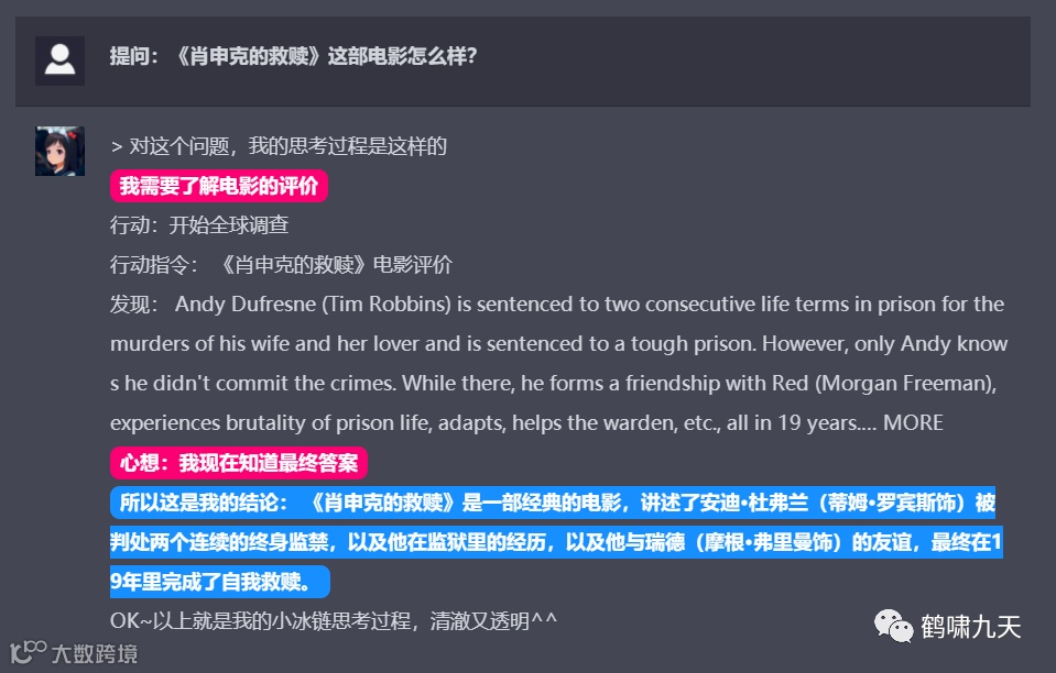 小冰链:“《肖申克的救赎》是一部经典的电影,讲述了安迪。。。”