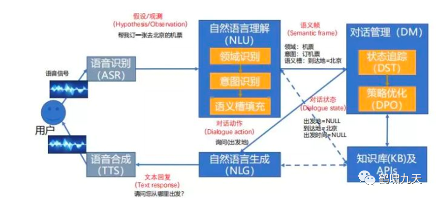 DM(会话管理):DST会话状态跟踪、DP对话规划,还有各种API