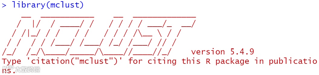 首先,我们需要加载R包,mclust。这个包加载的时候十分“酷炫”。