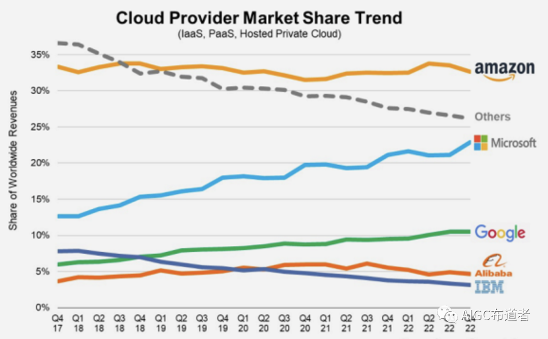 看一下全球云服务市占率数据,任重道远。