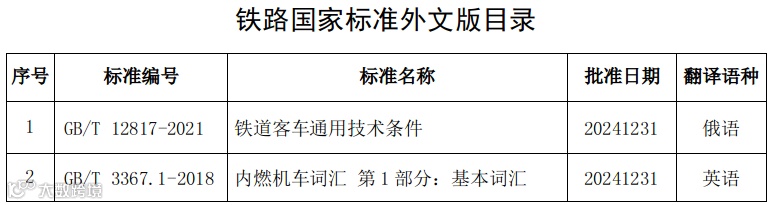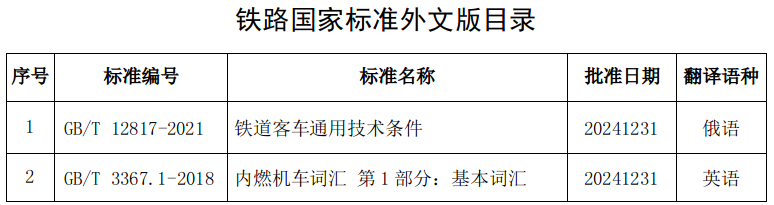 《铁道客车通用技术条件》等2项铁路国家标准外文译本正式发布