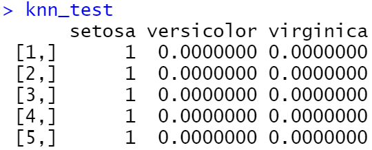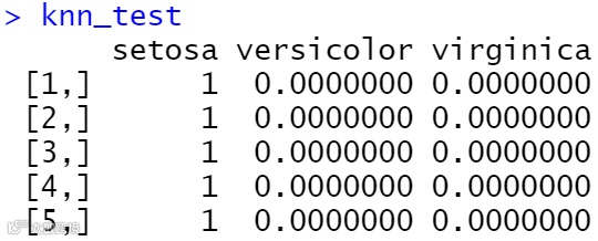 library(caret)data("iris") #加载R自带的鸢尾花数据集set.seed(666)l <- caret::createDataPartition(iris$Species,p=0.8,times = 1,list =FALSE)trainset <- iris[l,]testset <- iris[-l,]set.seed(3333)knn_train <- knn3(as.matrix(trainset[,-5]),as.factor(trainset$Species),k = 5)