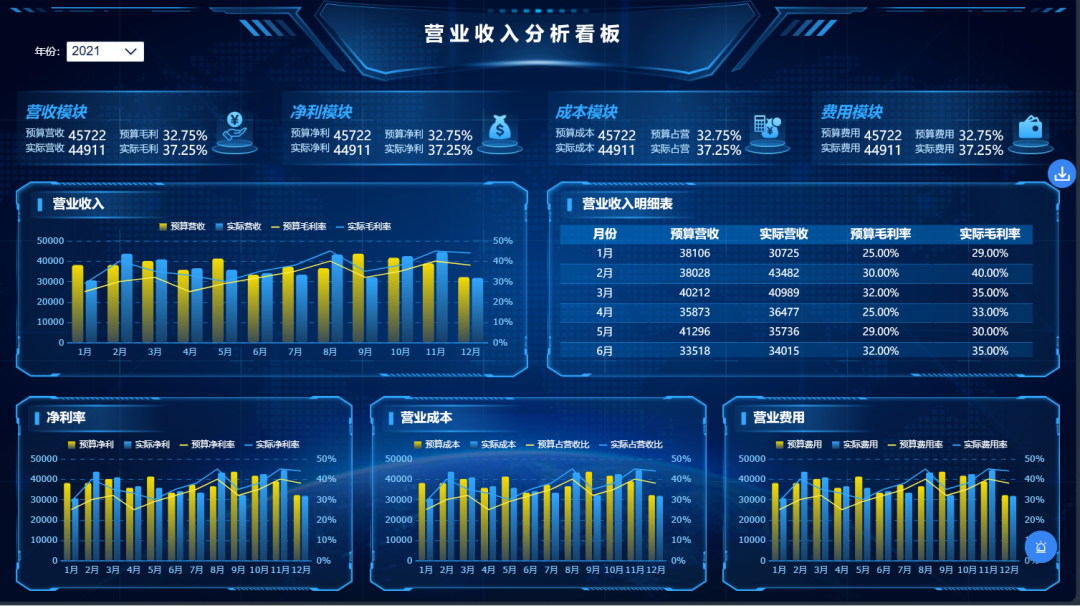 下面老李来演示几张看板,带大家看看科学的预算分析一般要准备哪些内容。这些看板都是用FineReport来搭建的,除了销售场景下的目标设定环节,FineReport还内置了很多场景和环节的模板资源,操作简单易上手,有相关需求的可以自己点击链接试一试:https://s.fanruan.com/w067a