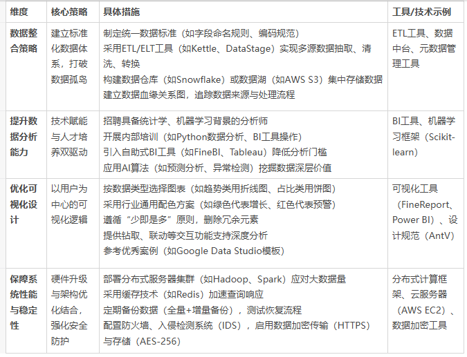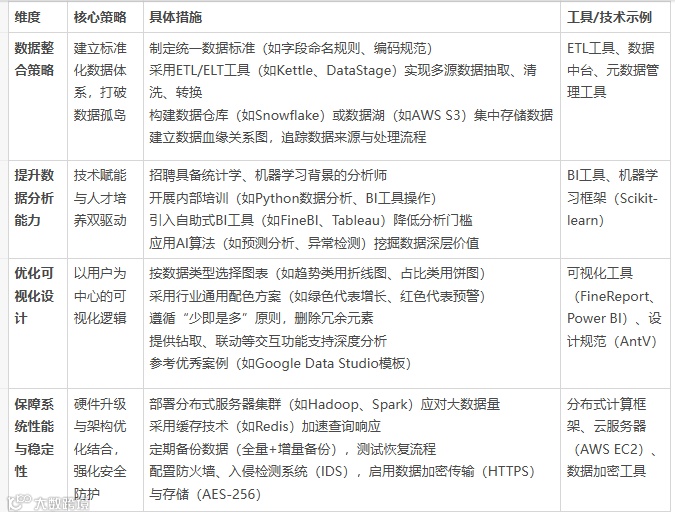 以下是企业数据管理与可视化优化策略的表格整理: