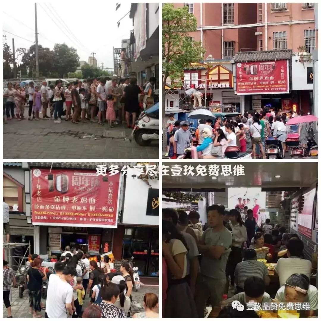 当地组织一次自驾游,80多辆车,李总找到他们,让这些车打上金牌老鸡面的广告,提供免费餐券,把金牌老鸡面势造大。