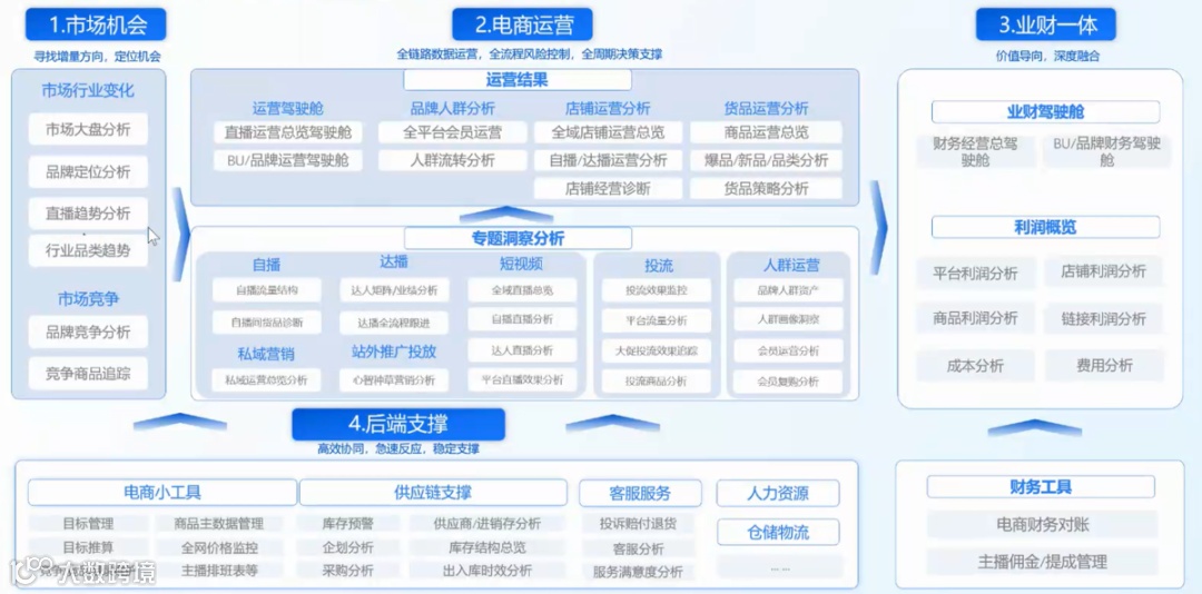 了解了E数通的功能和优势后,我们可能会好奇,在实际业务中,业财一体化究竟有哪些应用场景呢?下面就一起来看帆软一站式电商参谋系统的典型应用场景。