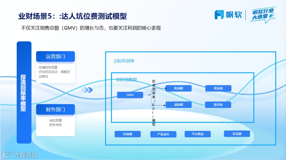 在与网红或KOL(关键意见领袖)合作时,此模型用于评估合作的成本效益,包括坑位费和投流费。模型通过分析潜在合作带来的GMV增长,帮助企业预测合作的盈亏平衡点,从而做出是否投资的决策。这确保了与达人的合作能够在预算范围内带来最大的回报。