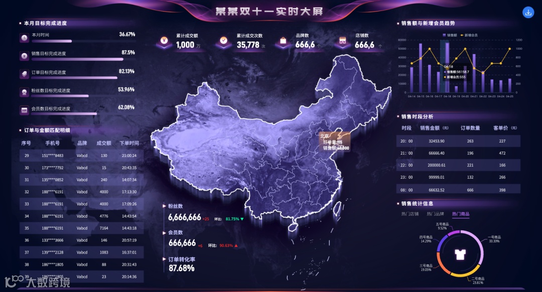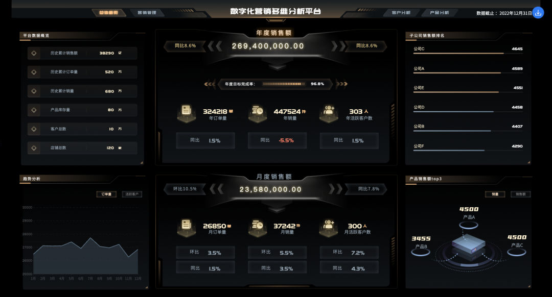 (1)确定关键指标:根据领导需求和企业的业务特点,确定领导驾驶舱的关键指标。关键指标应该具有代表性、可衡量性和重要性,能够反映企业的核心业务和运营状况。例如,对于电商企业,关键指标可以包括销售额、订单量、客户转化率、客单价等。