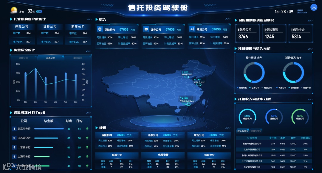 (2)证券:证券行业的领导驾驶舱可以展示市场行情、投资组合表现、交易数据等信息。证券机构的领导者可以通过驾驶舱实时监控市场动态,评估投资组合的风险和收益,及时调整投资策略。例如,当市场行情发生变化时,领导者可以通过驾驶舱快速了解不同投资产品的表现,做出买卖决策。