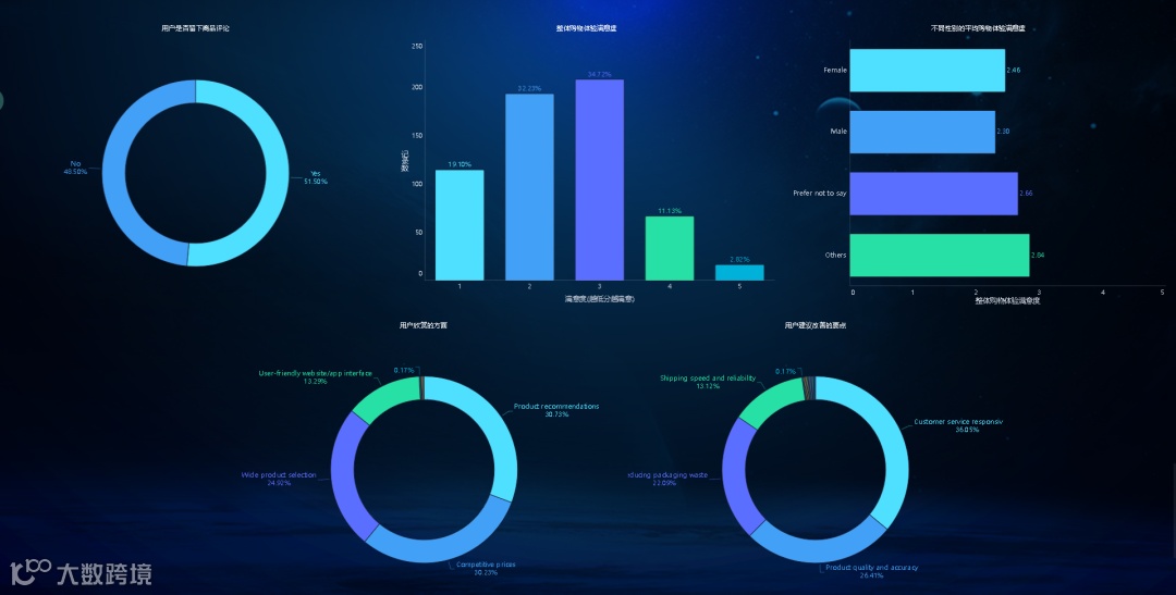 优势与不足:产品推荐、价格和商品选择是平台优势;客户服务、产品质量和包装问题是用户期望改进的方向。