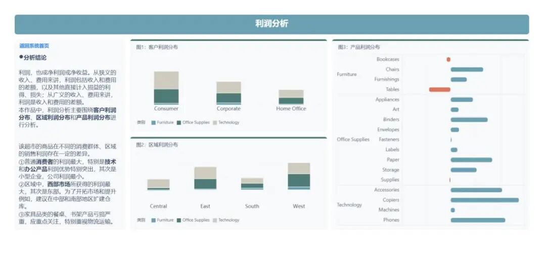 ②区域中,西部市场所获得的利润最大,其次是东部。为了开拓市场和提升例如,建议在中部和南部地区扩建仓库。