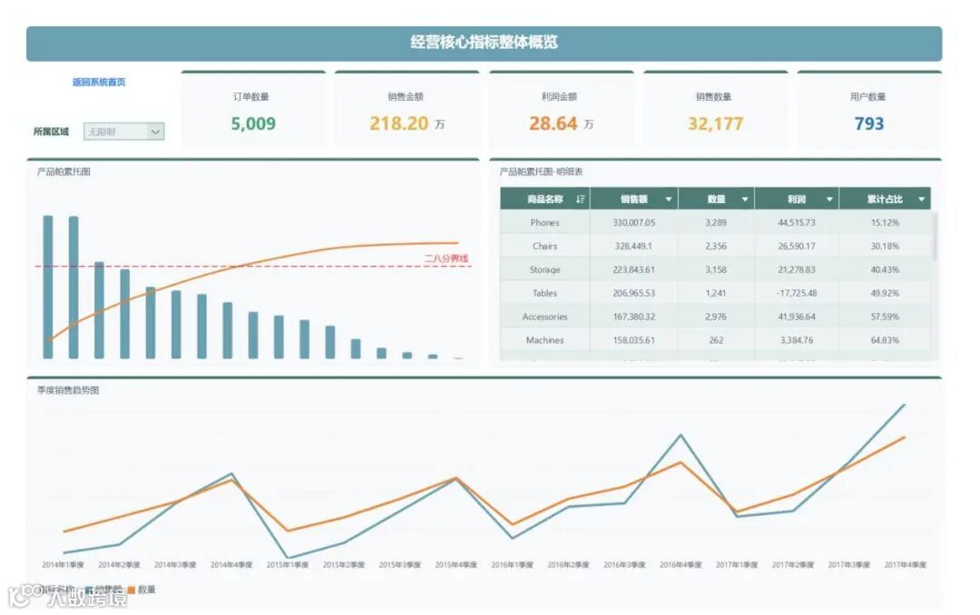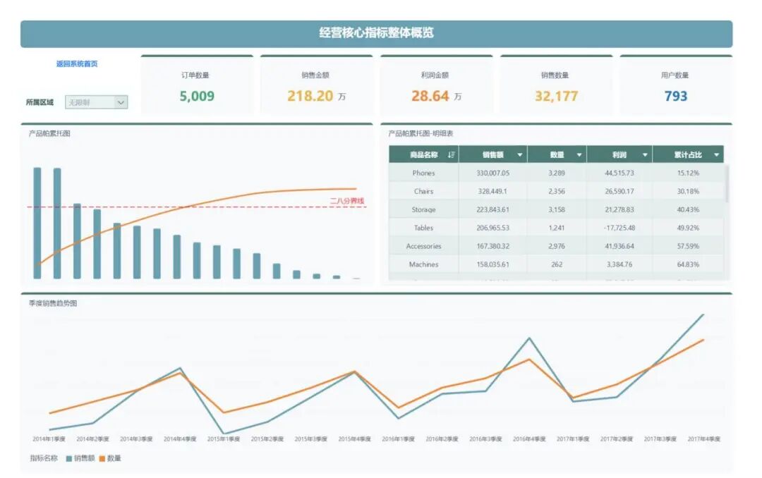 整体把握核心经营指标,包括销售指标、利润指标和用户指标,同时大体了解商品销售情况以及历史经营情况。