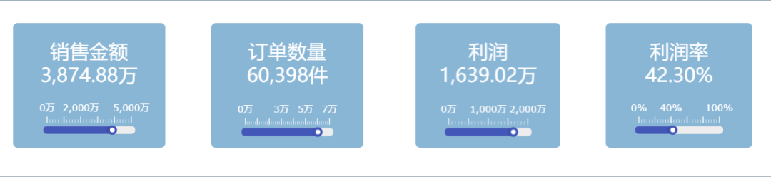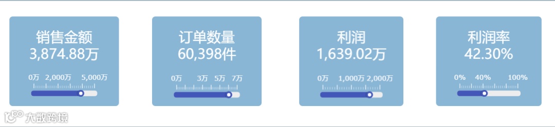 从上述指标卡得知,该企业在三年内商品订单量总计6万余件,共销售3874.88万元,利润率高达42.30%。可见,从整体经营状况来看,企业盈利能力强,经营状况良好。
