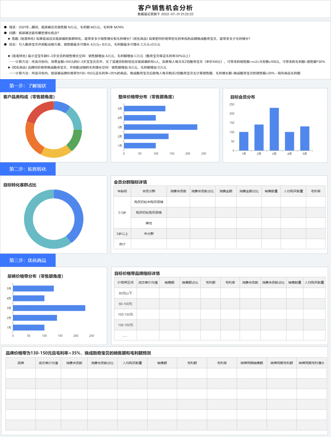 本次分析分为总部管理层、总部运营人员和一线销售人员三个视角,在看板规划上分为3个主题开展。