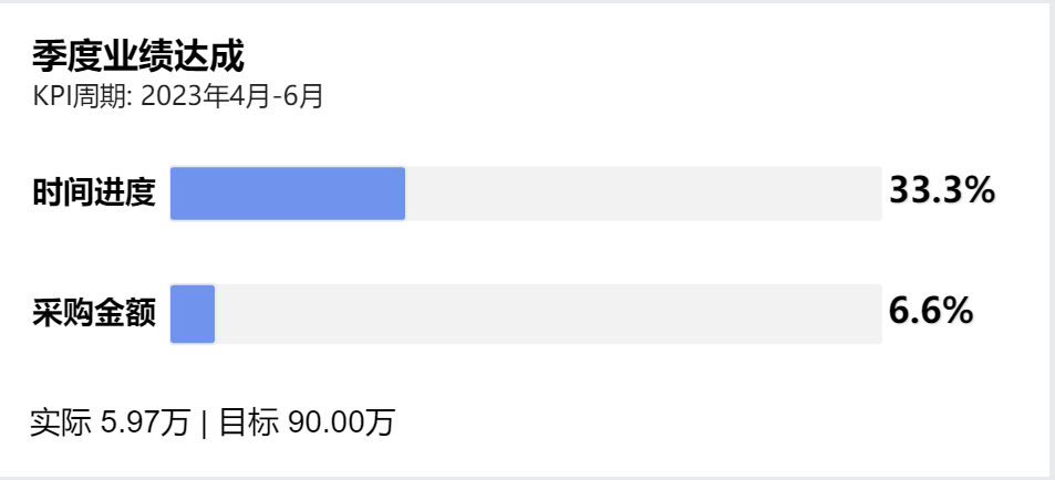2023年Q2度酷奇宝贝目标采购额90万,时间已过33.3%,KPI达成率仅达成6.6%。
