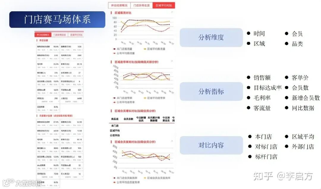 构建赛马场体系,让门店进入马场竞争状态。在绩效层面,把门店的绩效和店长的绩效绑定,提高店长对于门店管理积极性,提高整体运营水平。在操作层面,将门店的关键绩效指标如营业额、会员运营情况等与对标门店、区域平均值进行对比,让落后门店处于紧张中。