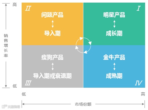 波士顿矩阵通过市场增长率和相对市场份额两个维度来评估企业的产品组合。将产品分为“明星”、“问题”、“金牛”和“瘦狗”,以指导产品投资和撤资决策。