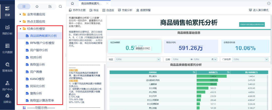 以上就是常用的分析模型,学会的朋友可以试着动手做一下。我用到的工具是FineBI,文末也附上模板链接,可以免费试用
