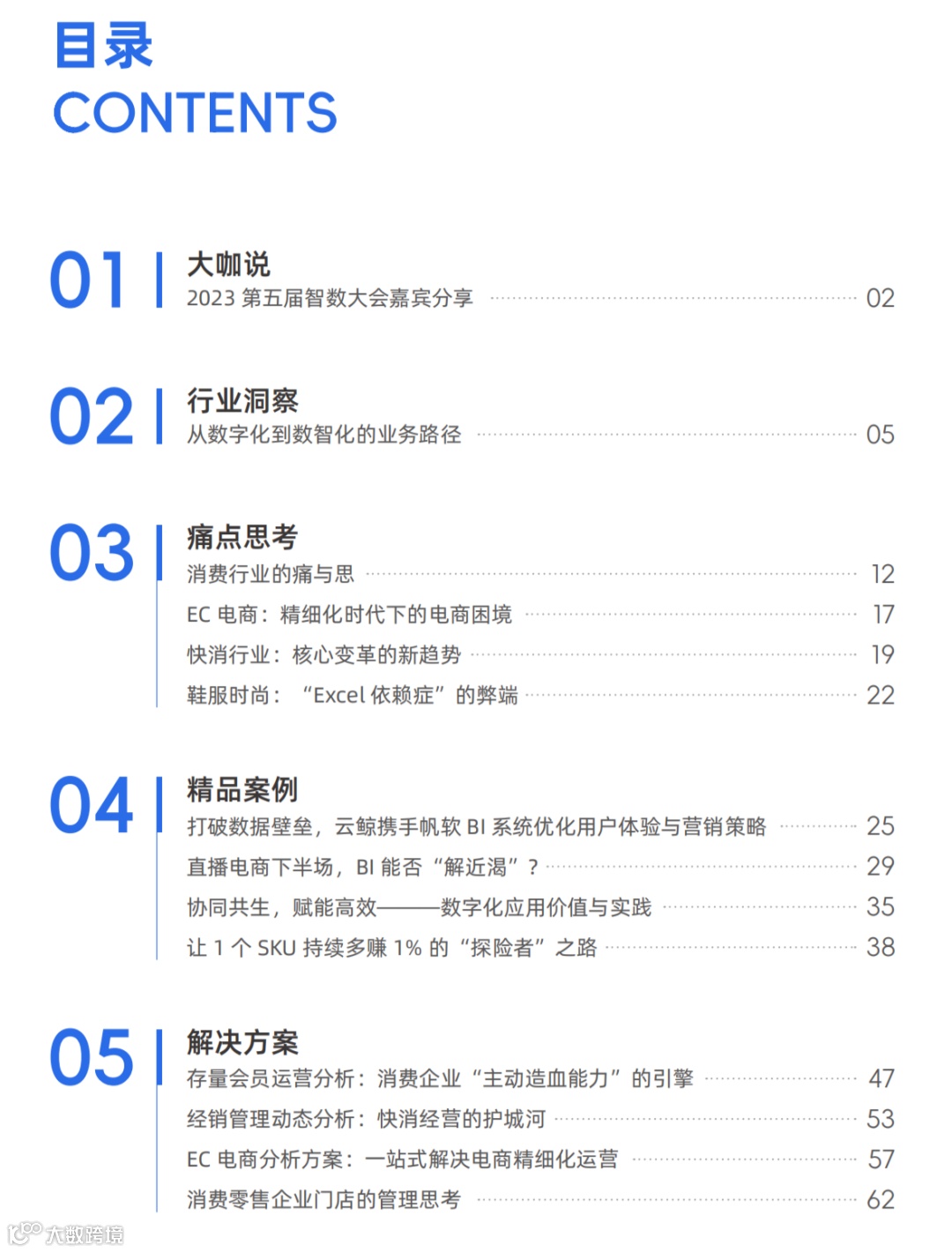 本文摘录于帆软最新《消费零售行业数据建设白皮书》,该书汇集了行业大咖的洞见,深入分析了消费零售行业的痛点与思考,并通过精品案例展示了数据建设在优化用户体验、营销策略和提升业务效率方面的巨大潜力。目录如下: