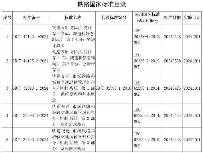 《铁路应用 制动性能计算(停车、减速和静态制动) 第1部分:平均计算法》等5项铁路国家标准正式发布