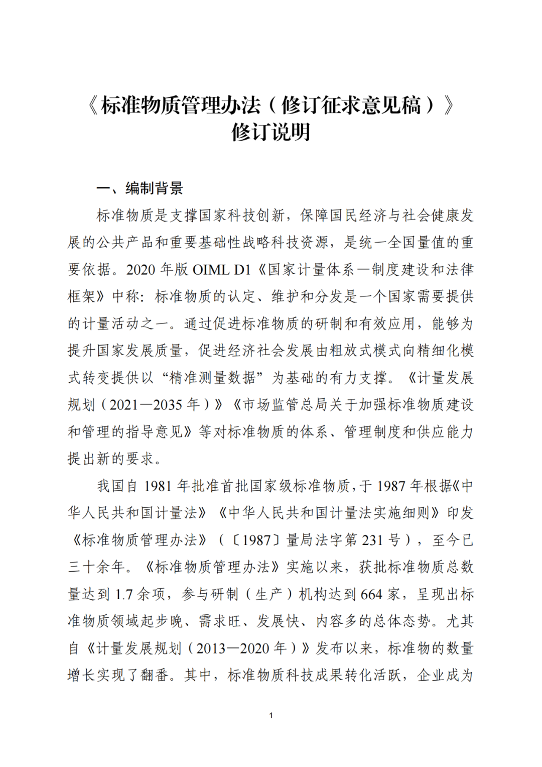 1.《标准物质管理办法(修订征求意见稿)》