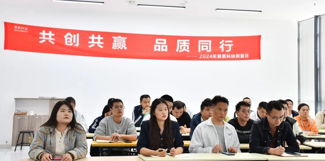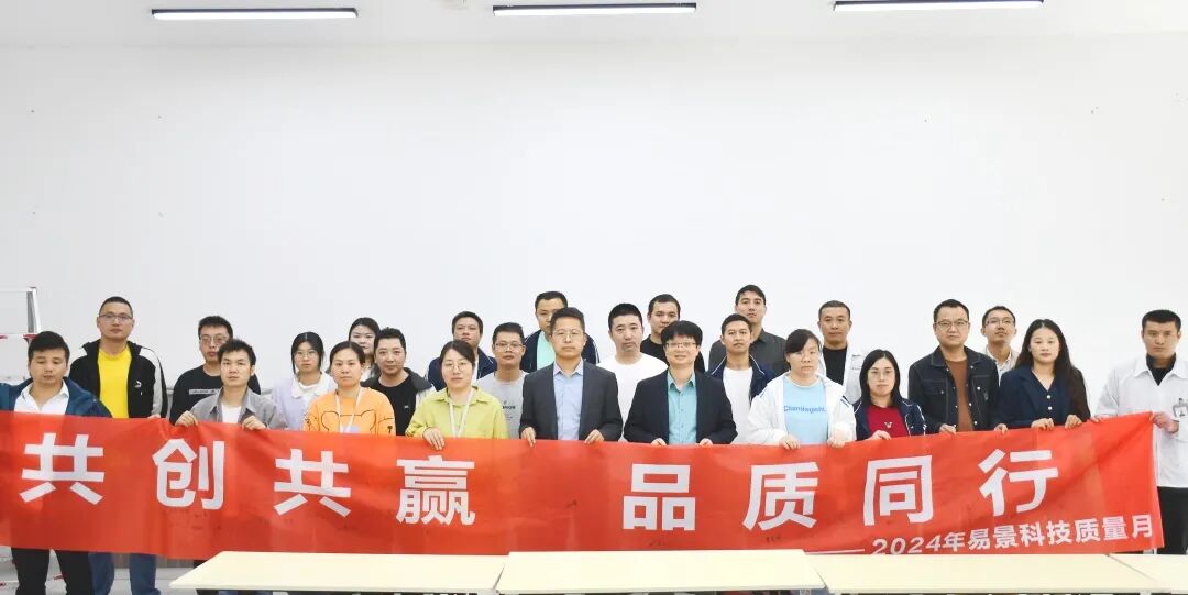 易景科技集团于2024年10月22日,由四川易景做为质量月主会场协同深圳、南京、上海、合肥、重庆6地举办了以“共创共赢,品质同行”为主题的质量月启动大会。公司董事长、总裁,副总裁,制造总经理,质量中心总经理及公司各部门负责人等出席本次会议。
